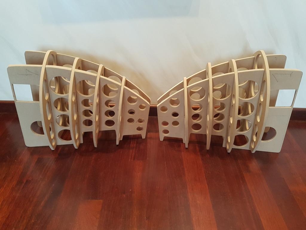 Новото оребряване е с маса 5,9 кг, осреднената стойност спрямо плътността на МДФ е 0,75кг. на кубически дециметър,