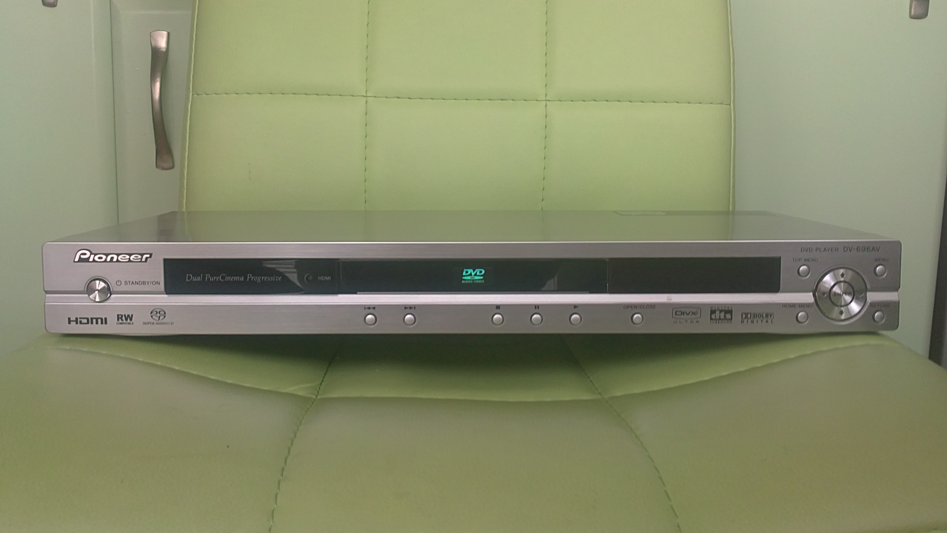DVD Pioneer DV-696 AV в перфектен вид без следи от употреба.Висок клас плеар на фирмата.Чете DVIX-субтитри на BG. HDMI-изход,коаксиален и оптичен аудио изходи и много други.Подробности сайта на производителя:http://www.pioneer.eu/eur/products/arch ... index.html. Цена:90лв. [attachment=1]