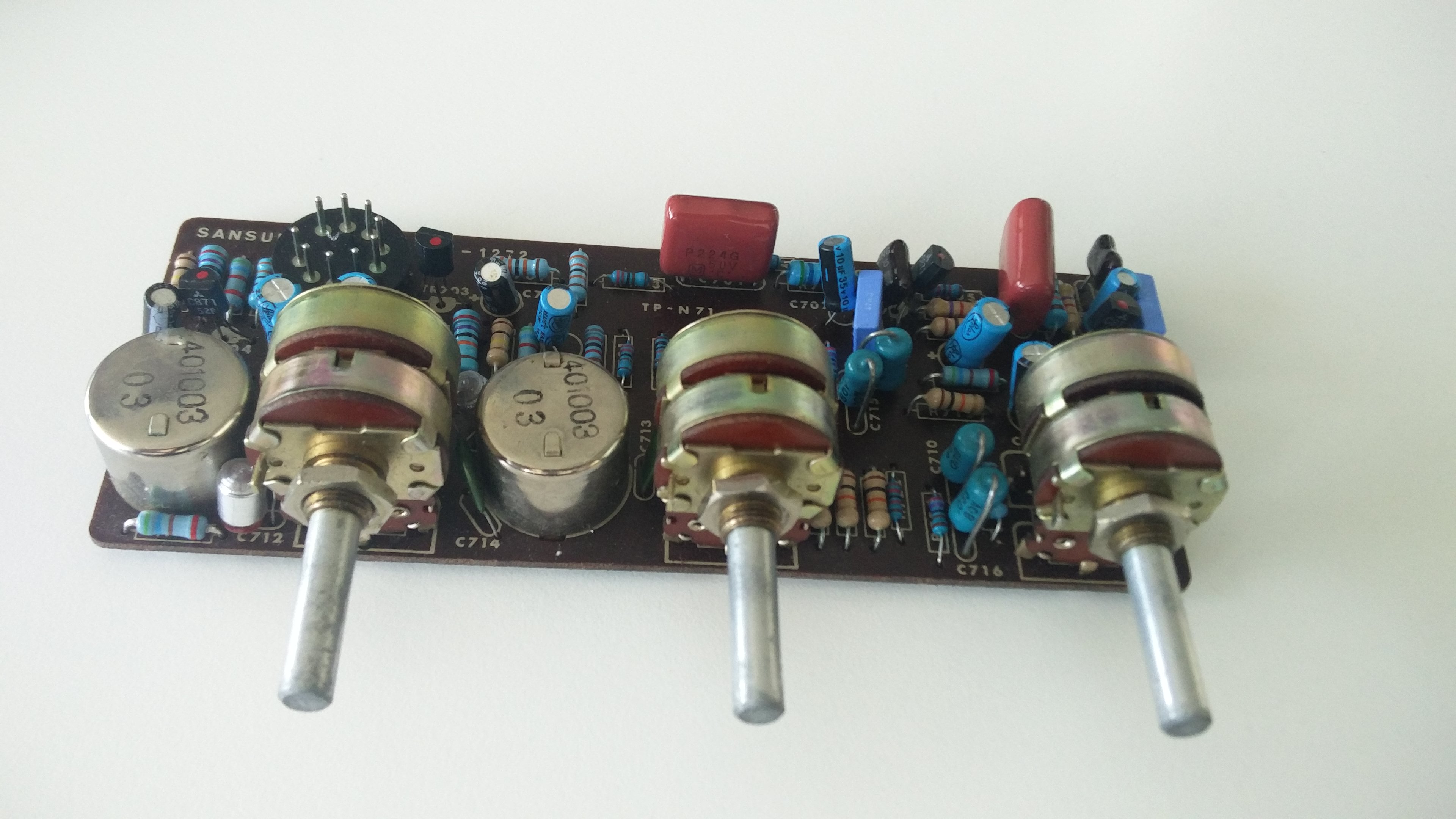 Това е тон платката на модела на Сансюи А555а . Можеш да я ползваш като тон-коректор към всяко нискоимпедансно транзисторно или на интегрални схеми устройство. Диапазона е +/– 10децибела . За подобрение можеш да: