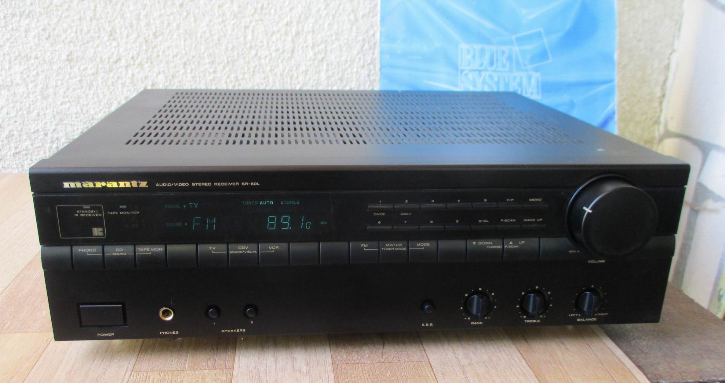 MARANTZ SR-60 – Висок клас стерео ресивър. Възможност за дистанционно – RC-60SR remote control. Мощен 2Х60 вата на 8 ома. при клирфактор – 0.09%. Демпинг фактор – 50. Размери – 420 x 118 x 334mm. Тегло – 7.6kg. Производство от 1985-1987 г. при цена – 1985 D.M. Ярък,голям и атрактивен дисплей. Чувствителен и селективен тунер с 30 мемори. Работи с колони от 8 – 16 ома. Перфектен технически и с добър външен вид. – 198 лв.