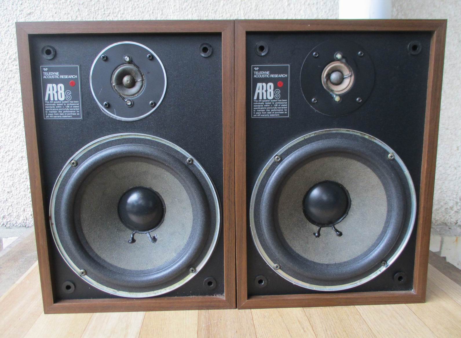 Acoustic Research AR8s – Двулентови американски колони,затворен обем. Препоръчителна мощност на усилвателя до 100 вата. Импеданс – 8 ома. Чувствителност – 88 дб. 8″ – 200 мм. баси,сервизирани с нови гънки. 32 мм. високочестотни. 12 кг. двете. Поредни серийни номера. – 140 лв.